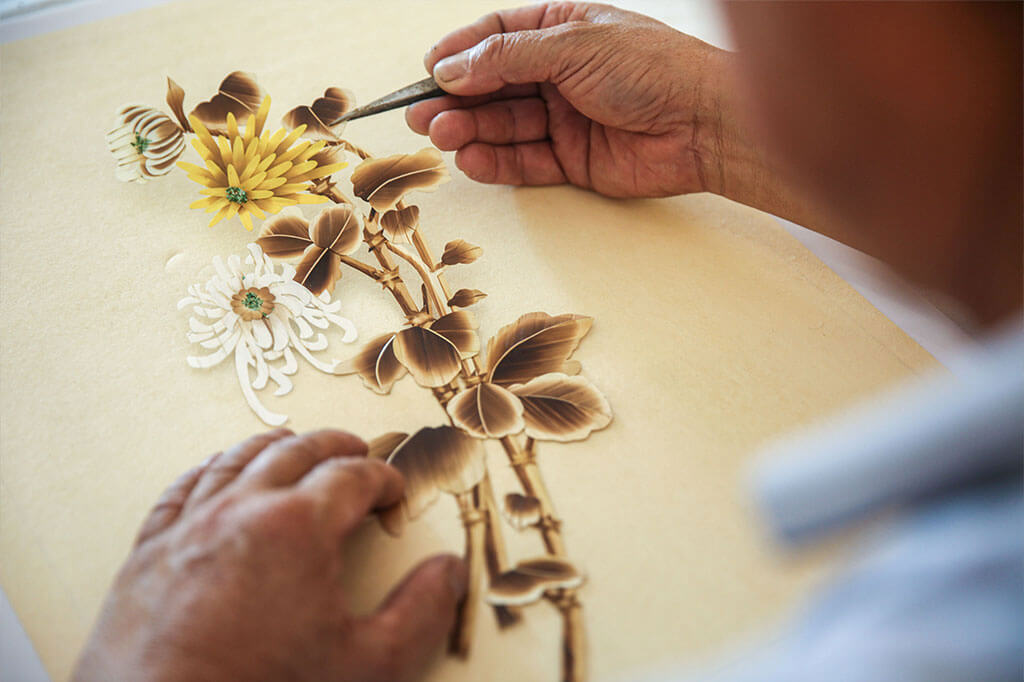 麥草畫始于隋唐時代的宮廷工藝品,是以麥秸稈為造型原料,運用麥稈的自然光澤和紋理、質(zhì)地,創(chuàng)造性融入國畫、油畫等諸多技術技法,經(jīng)過熏、蒸、漂等三十多道工序純手工制作而成。2011年,泊里“麥草畫”入選“國禮作品選”,2018年被確定為上合青島峰會國禮贈送各國領導人。